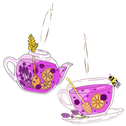 Sip on enchantment with our Lavender Magic Tea Time earrings.