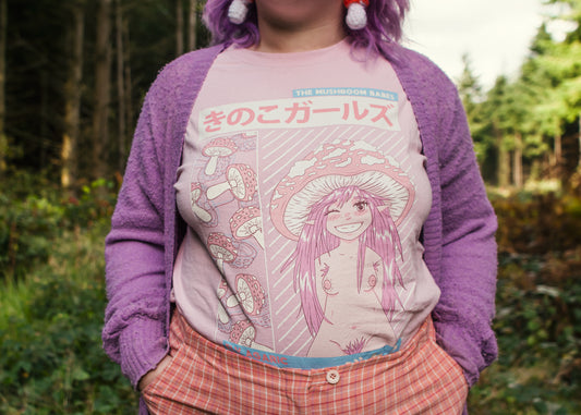 The Mushroom Babes range of colourful, nature & mushroom art designs on t-shirts and other clothing.