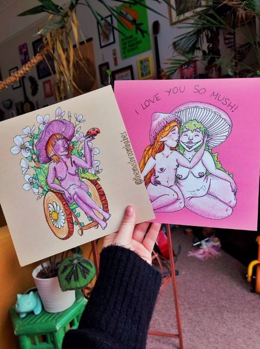 The Mushroom Babes range of body positive breastfeeding mushroom artwork, featuring Babes...