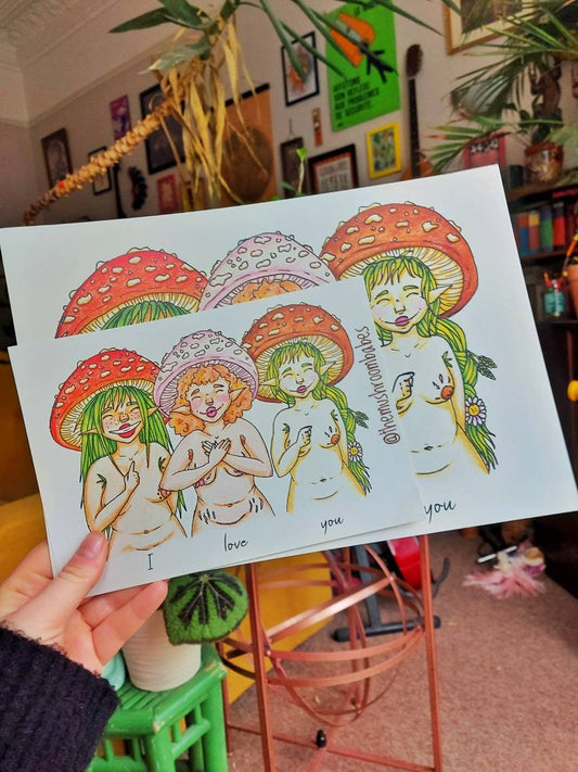 The Mushroom Babes range of body positive breastfeeding mushroom artwork, featuring Babes...